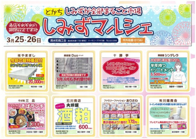 清水が全部まるごと市場になって、各店のおすすめ品が販売されたり、お得に購入できたりします♪