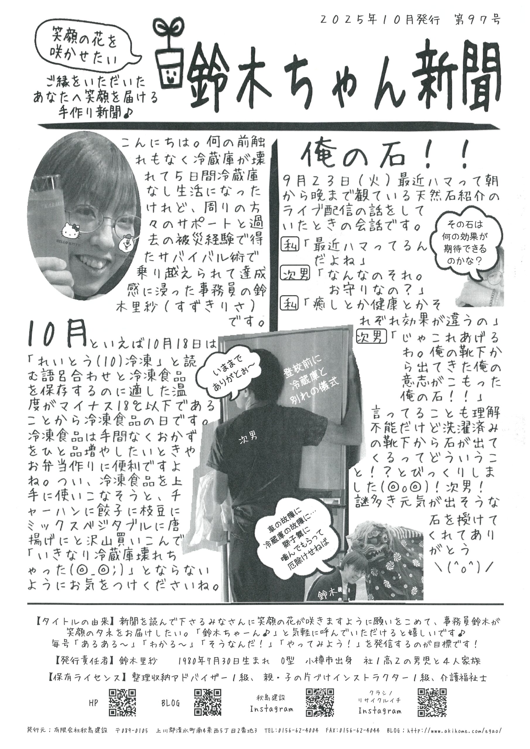 2025年10月発行の【鈴木ちゃん新聞】第97号です♪ 石なら何でもいいってわけではございませんが(;'∀')