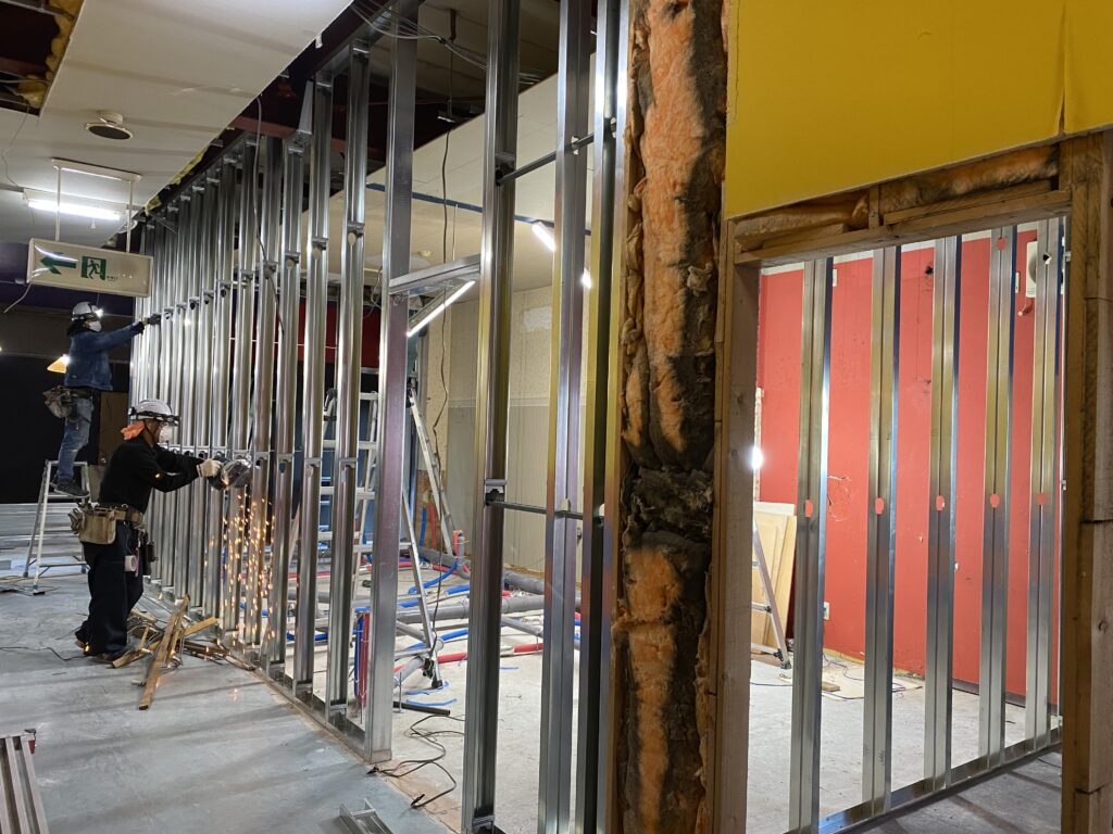 見えなくなる壁の中は鋼材を組んだ下地になります。