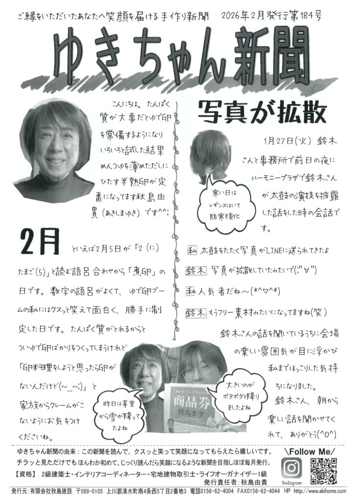 2026年2月発行の【ゆきちゃん新聞】第184号です♪