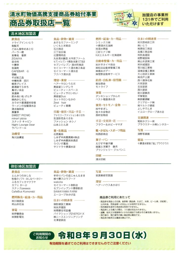 消費を下支えすること及び地域の消費拡大と地域経済の活性化に資することを目的に販売されている清水町発行の商品券。